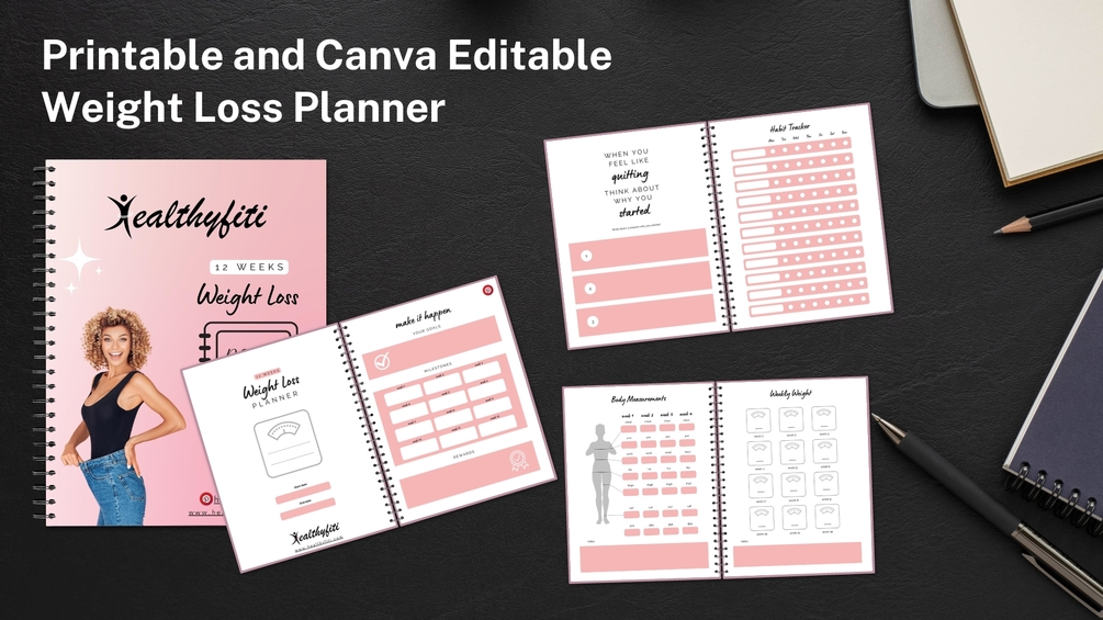 1. 12 Week Weight loss planner & Tracker PDF and Canva Template